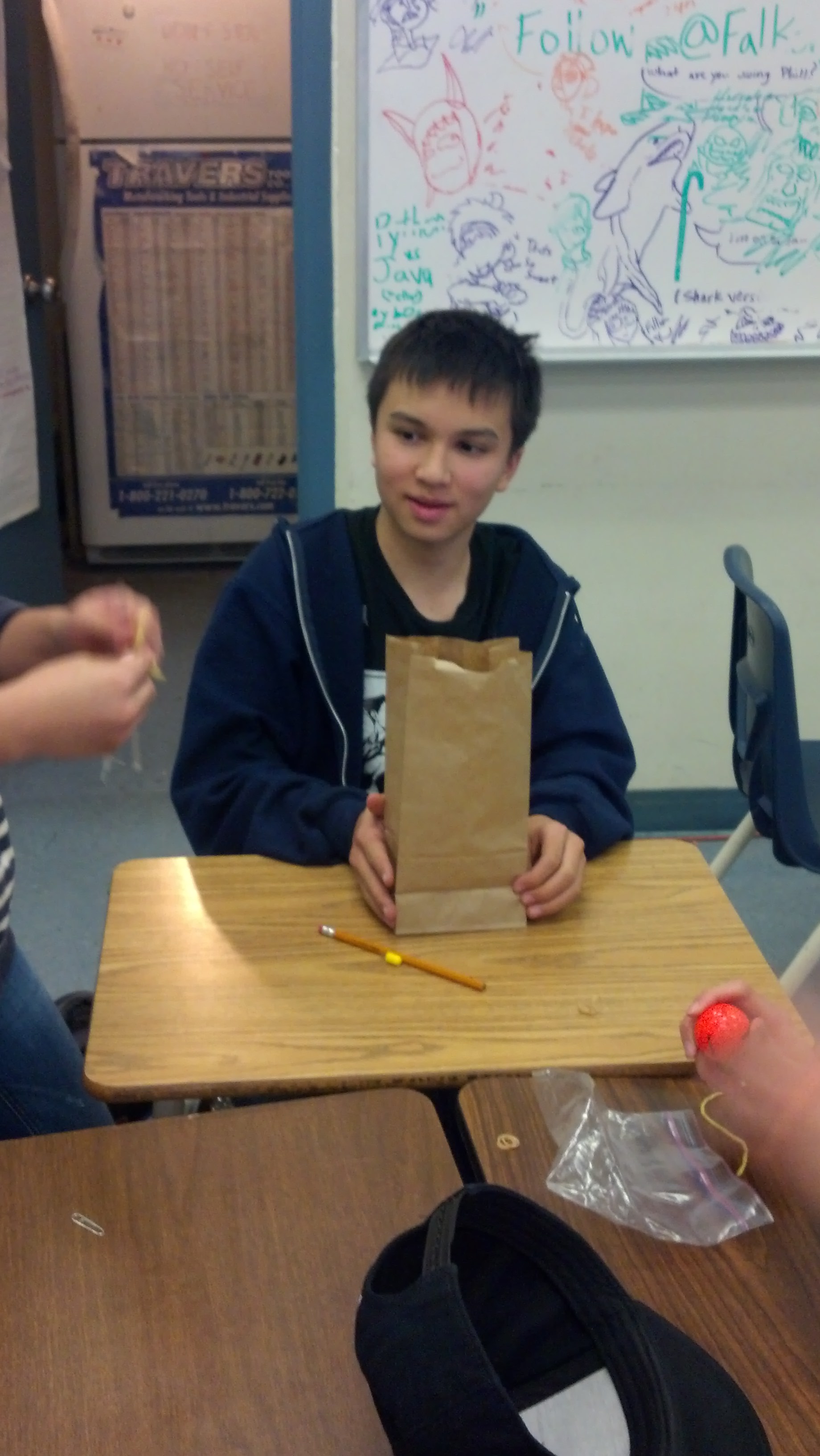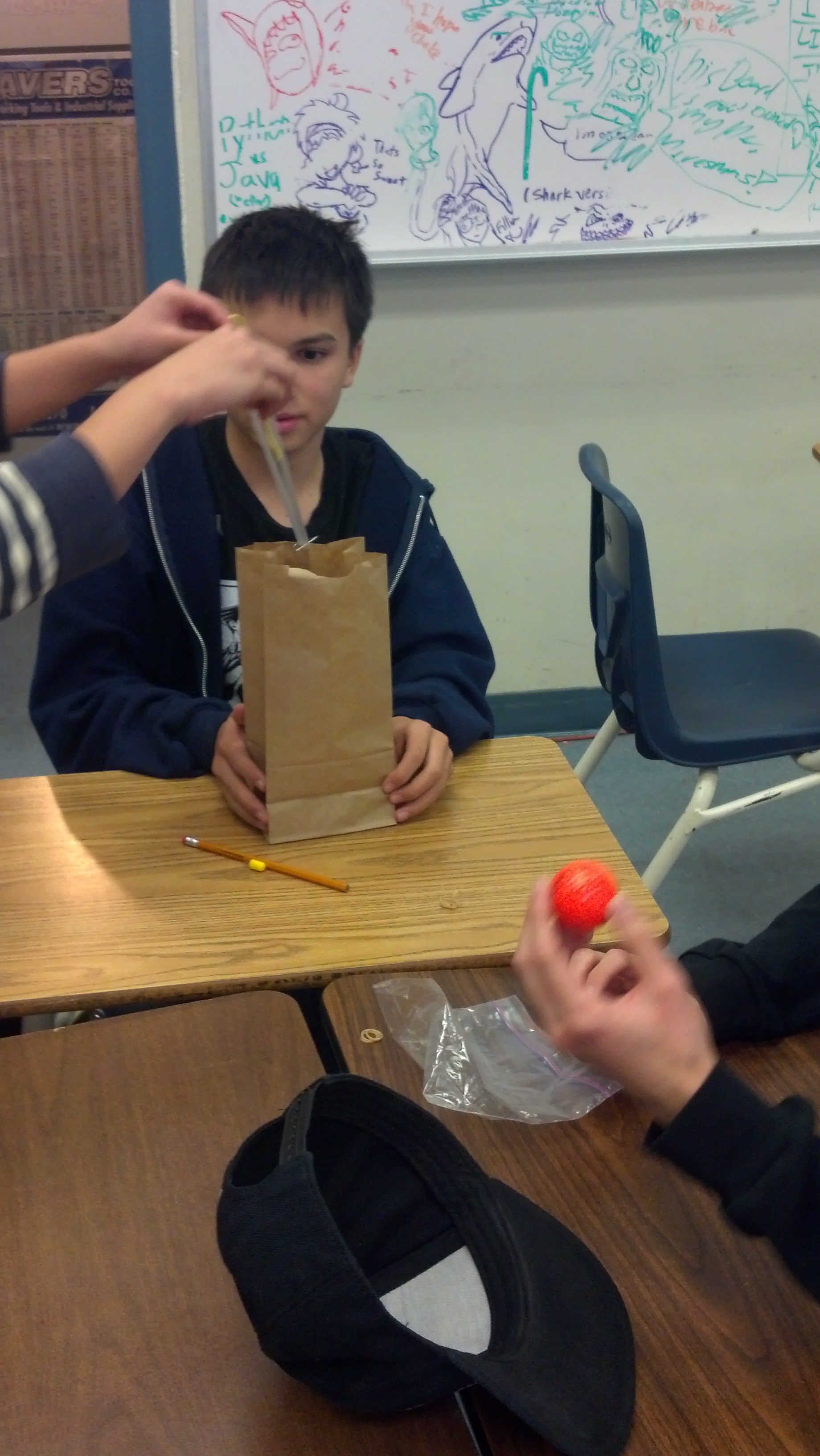 Wensday 11/18/15So today was wensday challenge day. Our wensday challenge was to make a product or a tool to to get ebola golf balls out of a paper bag. We failed.
